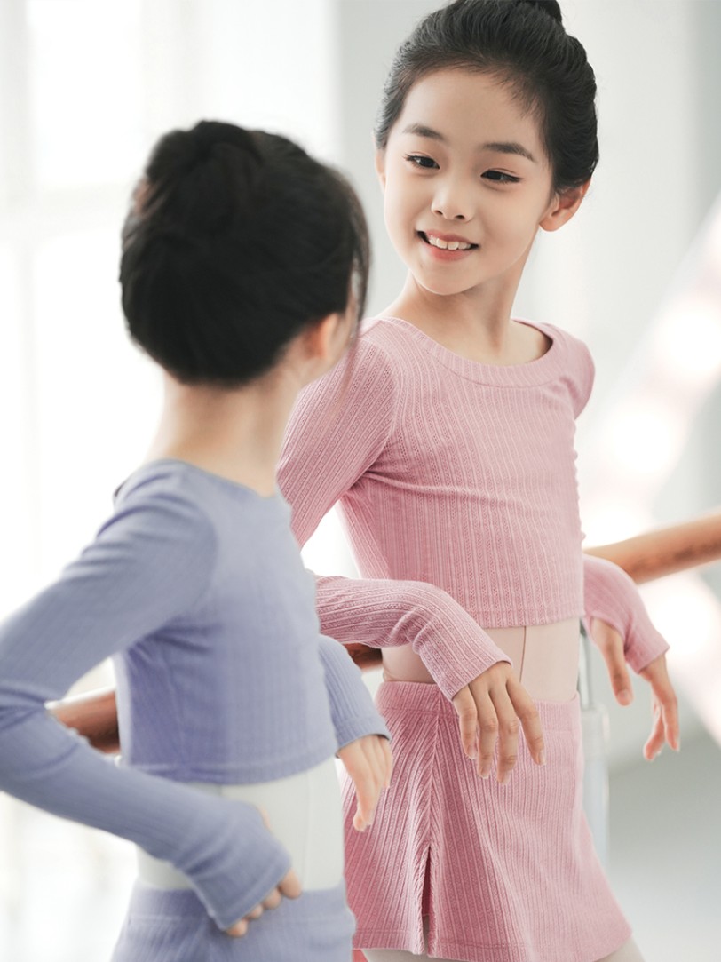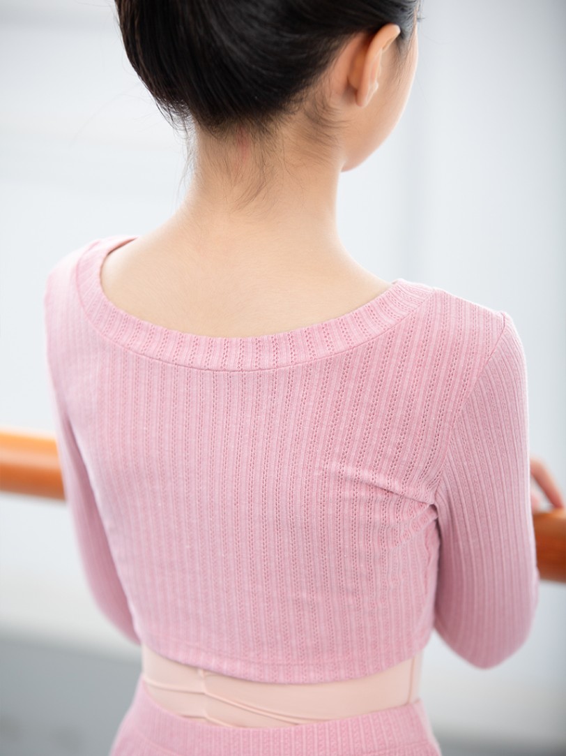 バレエのレッスンに最適なショート丈の七分袖トップ。