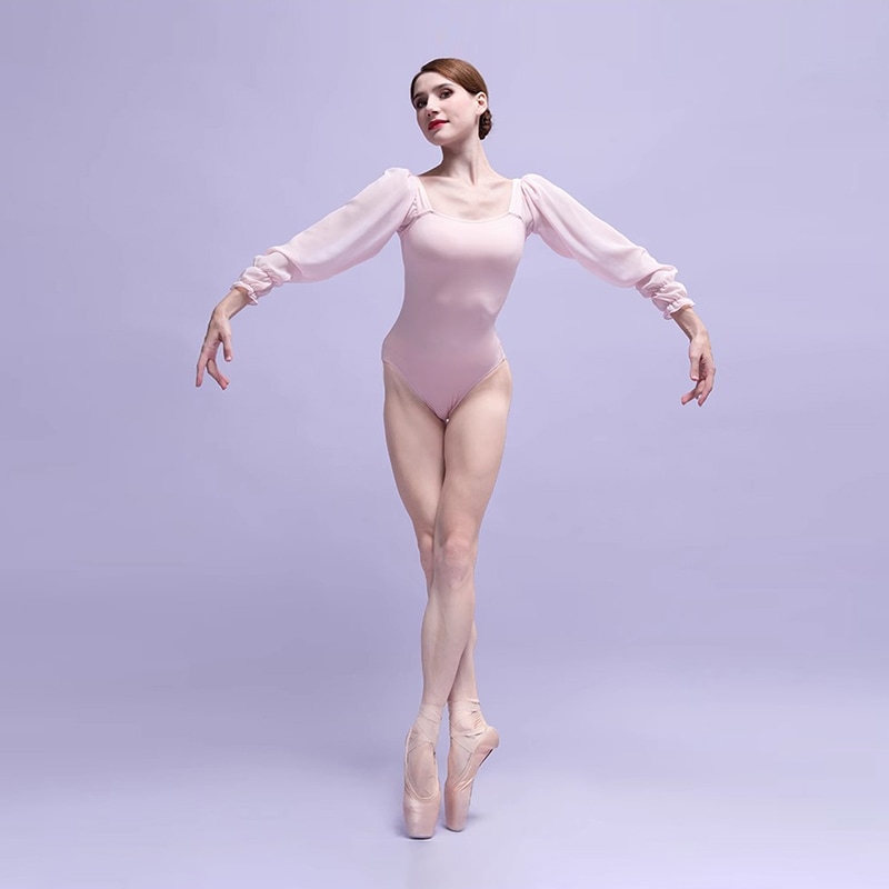 薄く伸びのよいチュール素材を活かしたエレガントロングスリーブレオタード。余計な飾りが無くシンプル、身体がすっきりと見える切り替えデザインがポイント。伸縮性に特に優れているので、色々な体型に対応出来る優秀な素材。肌を出したくない初心者の方から、シンプルなデザインを好む方まで幅広く対応できるデザイン。