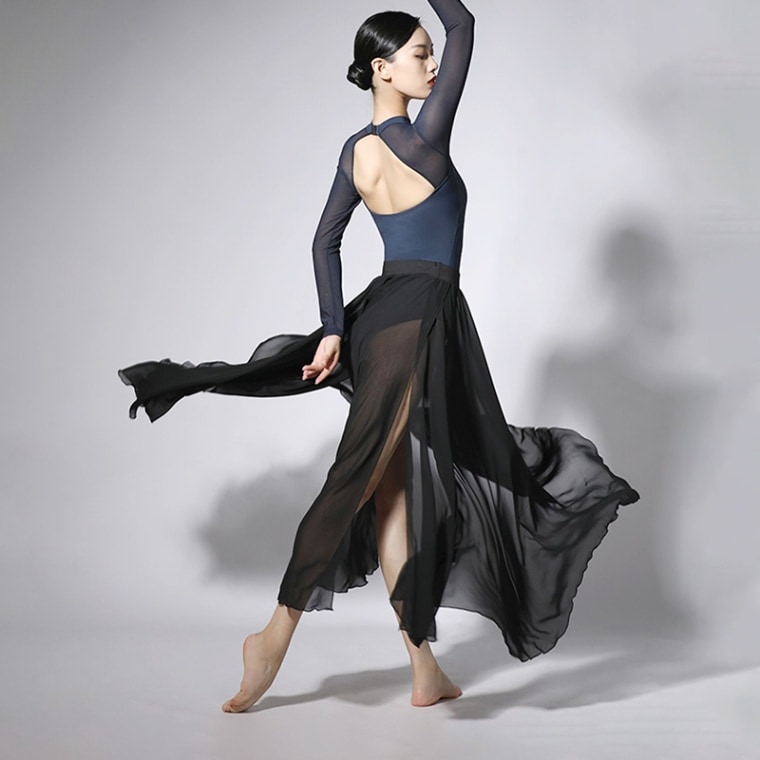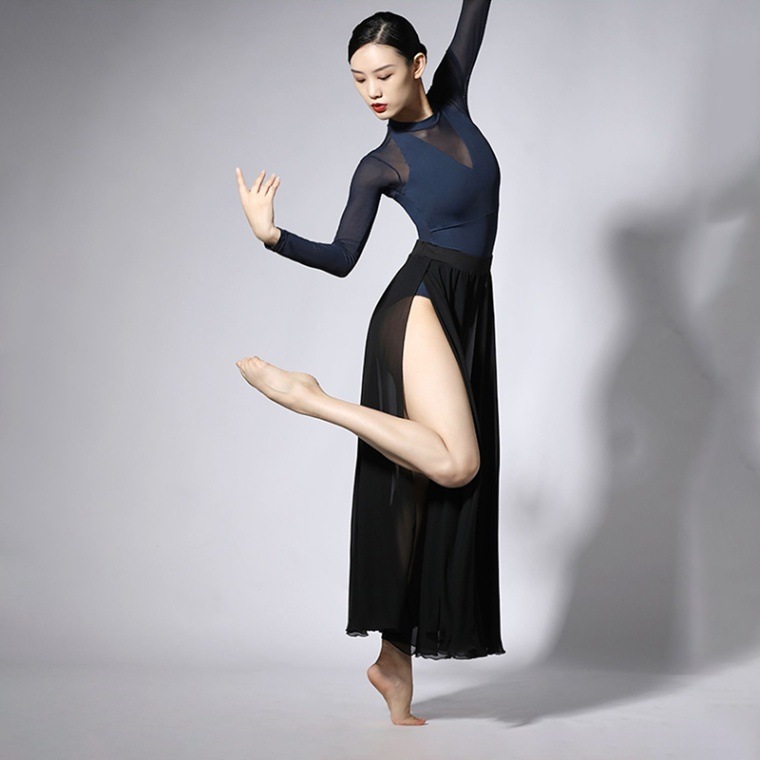 身体がすっきりと見える切り替えデザインがポイント。透け感の高いバックスタイルも脇が身生地でサポートされて安心感のある着心地。柔らかいストレッチチュールの袖は動きを妨げないストレスフリーな着心地。シンプルながらトレンド感のあるカッティングと素材使いのレオタード。バストパッドポケット付。