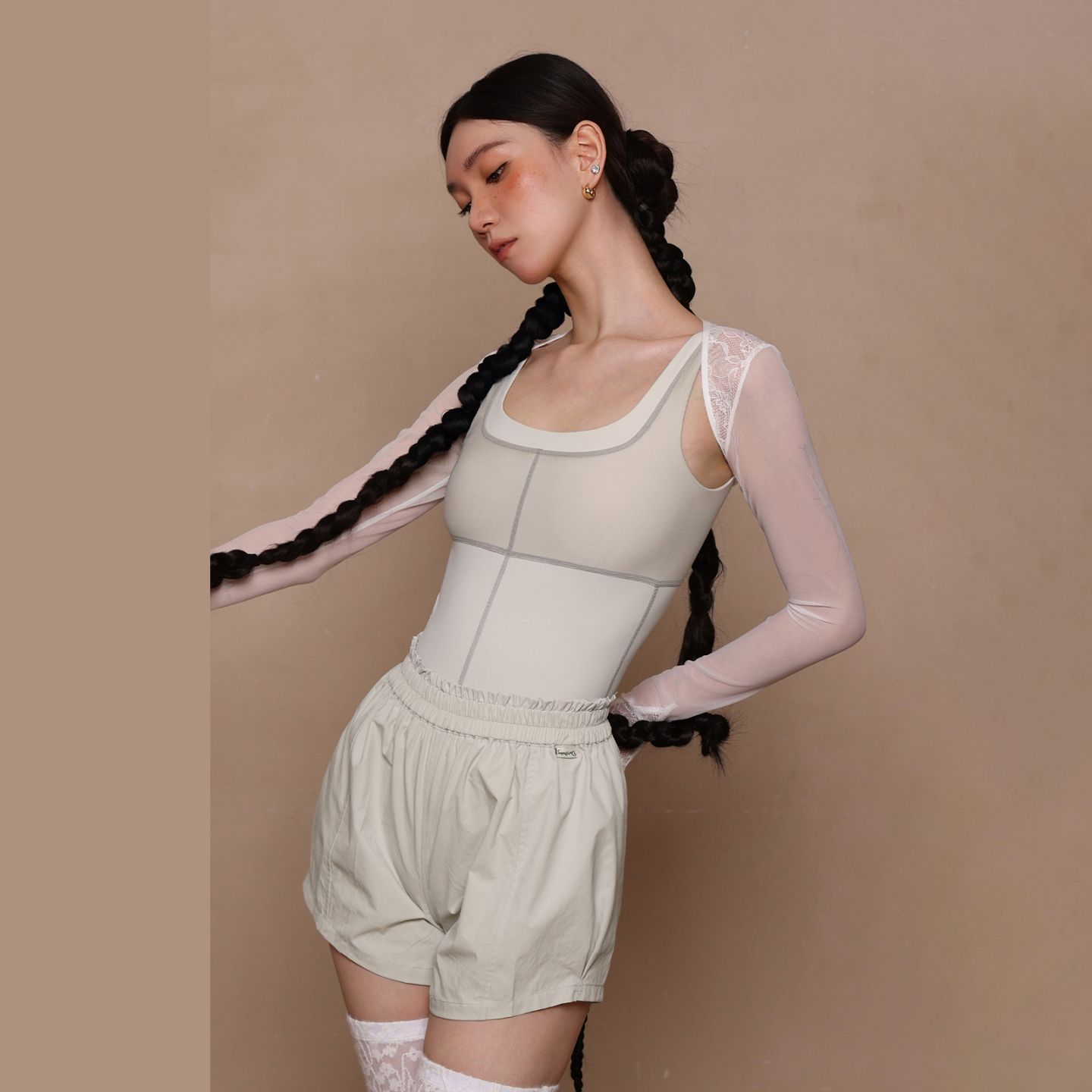 バレエ以外にも汎用性のあるアイテム。ウエストをパワーネット仕様にすることで、適度なサポート力と心地よいフィット感で、スッキリと見せてくれる優秀なアイテム。