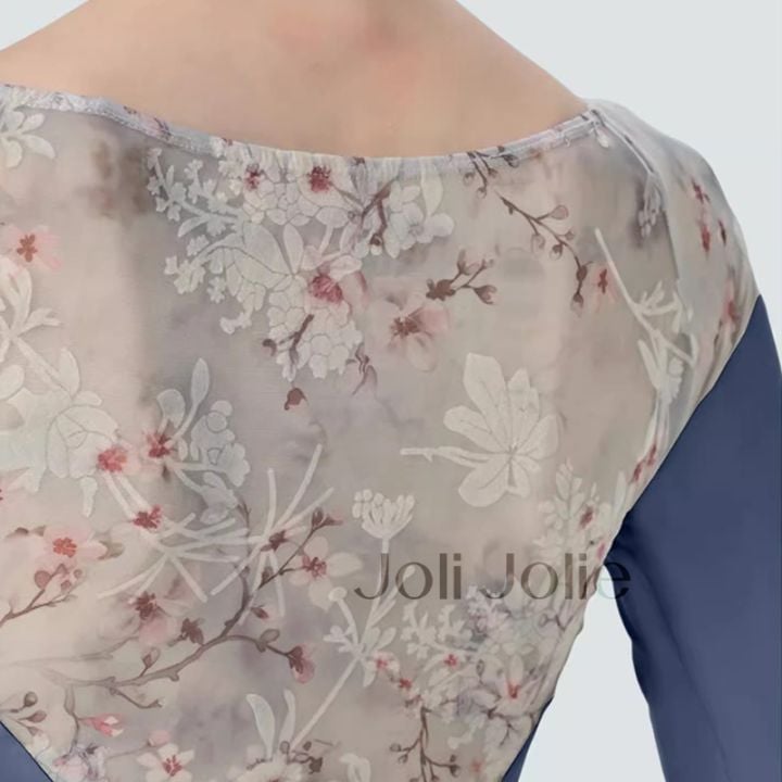 ●身頃をブラックカラーで切り替える事でウエスト周りがすっきりと引き締まって見える。リボンの様な胸下の切り替えはデザインポイントになるだけでなく、胸の位置を高く見せスタイルアップ効果も。バストパッドポケット付き。